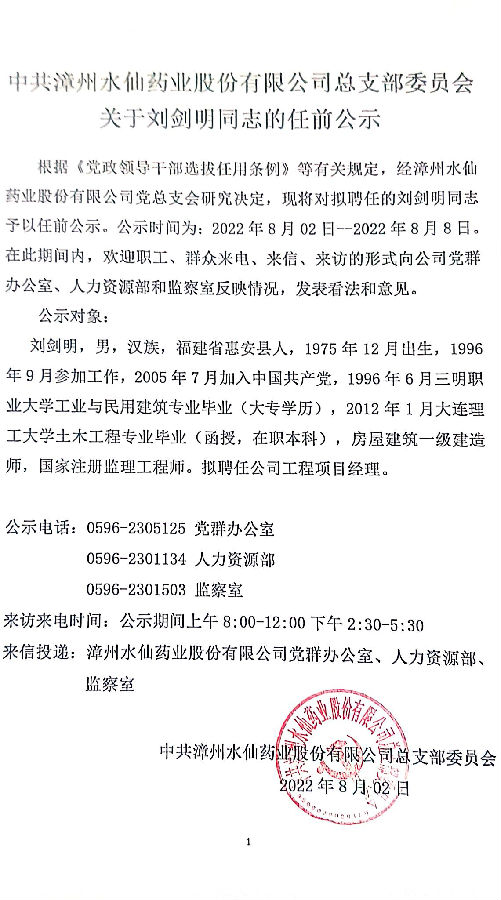 漳州市副市長(zhǎng)林少金蒞臨水仙藥業(yè)調(diào)研